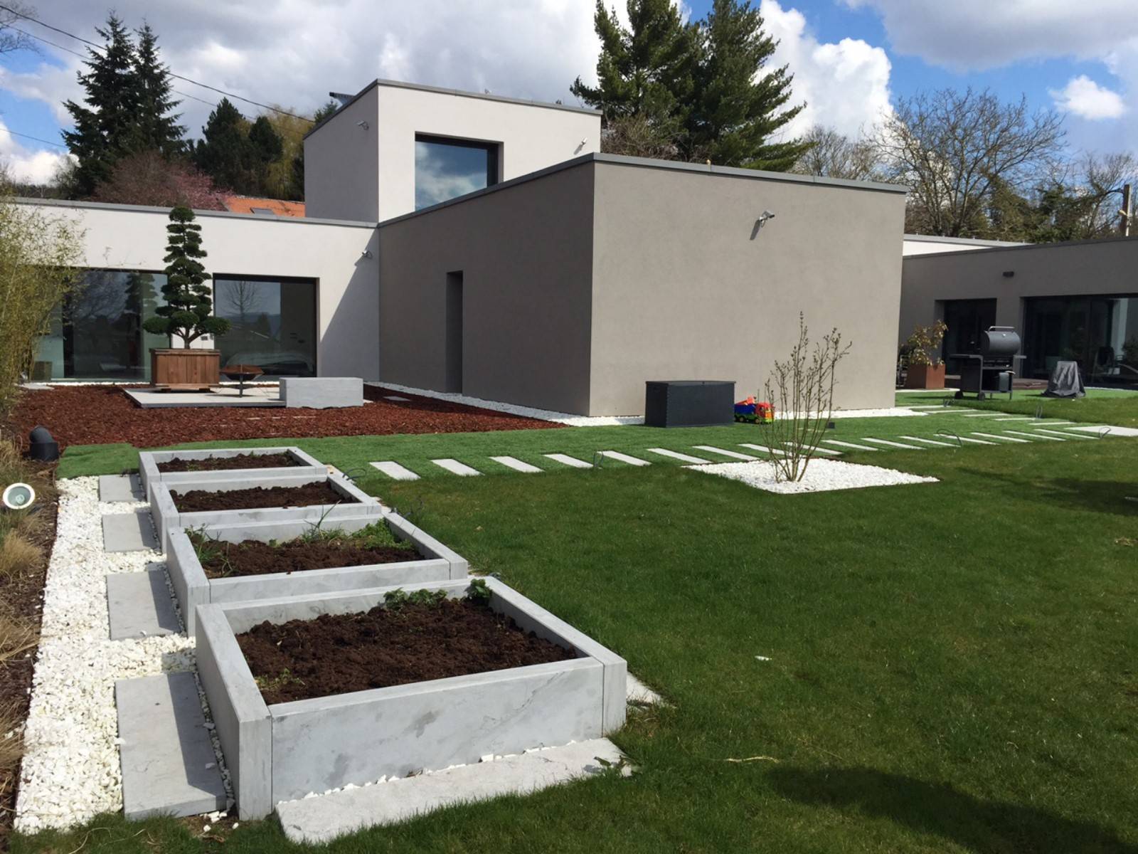 Aménagement extérieur, Aménagement paysager, Vieux lavoir en pierre, Auge en pierre, Bac en pierre, Bassin, Mobilier urbain, Fontaine, Bassin, Barbecue, Muret, Bordure, Banc, Jardin, Cour, Galet, Rocher, Monolithe décoratif, Palissade brise vue, Pas Japonais, Marche.