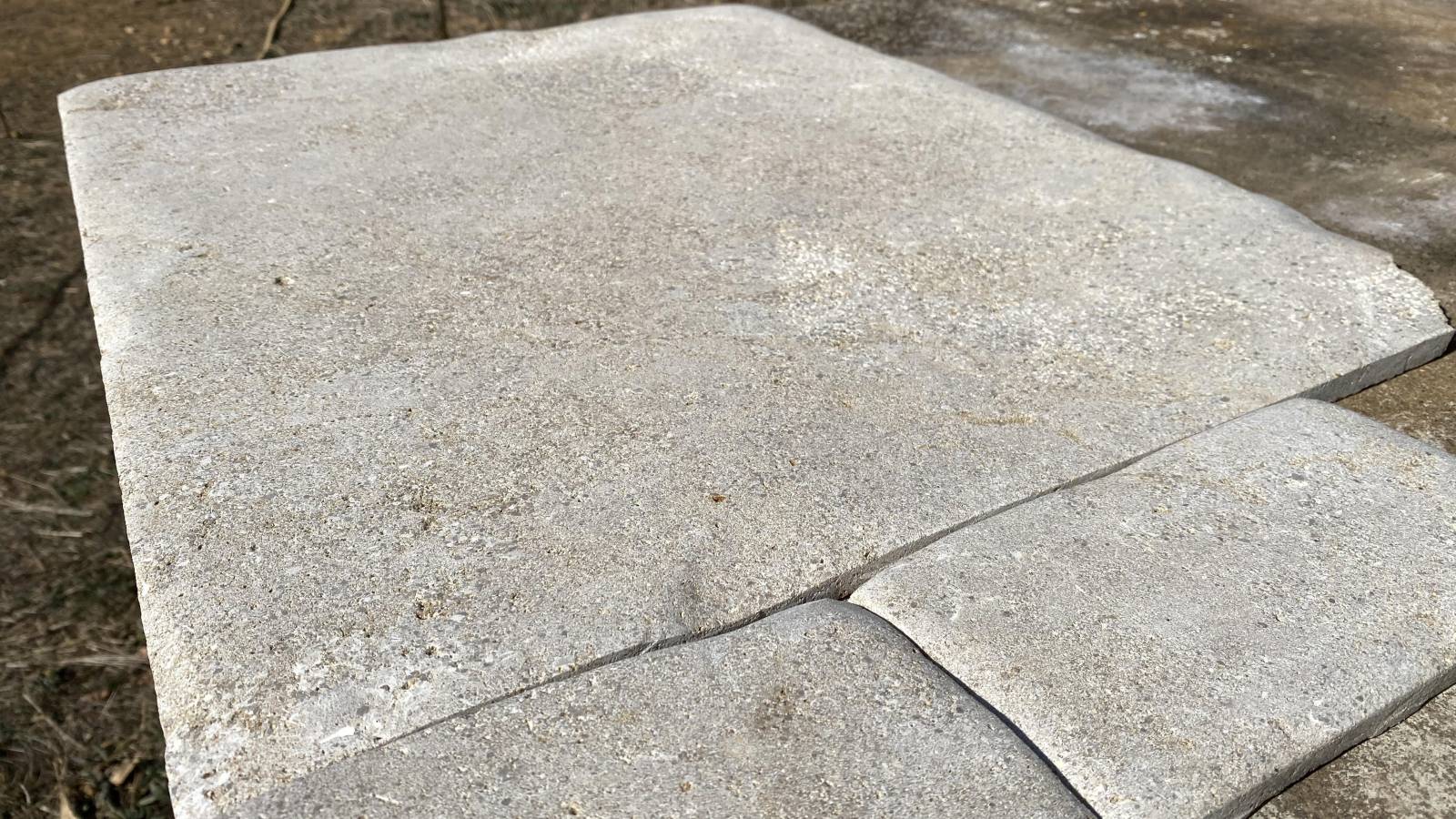 Utilisation pour intérieur et extérieur ce dallage (matière et finition haut de gamme) en pierre naturelle avec un degré de finition très poussé. La surface de la pierre est bouchardée, brossée, poncée au 60, 120 puis 220, les bords sont bombés, ciselés, ébréchés, usés. La patine est naturelle et aucun produit n’est utilisé. Avec notre savoir-faire et mécaniquement, nous recréons l’usure des vieilles dalles d’église… En bandes longueurs libres, largeur 50cm ou en Opus Romain, épaisseur 1,5 ou 2cm minimum, chaque dalle est travaillée et triée par nos tailleurs de pierre dans notre atelier de Valliguières, pour en savoir plus sur ces produits uniques et authentiques.
