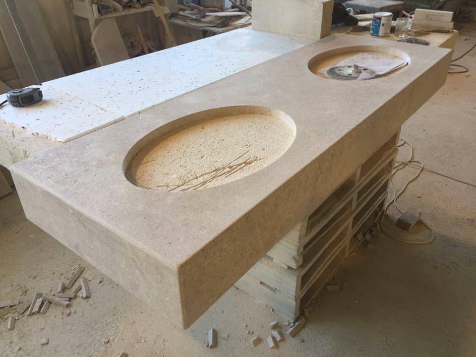 Taille de pierre : Nous fabriquons sur mesure dans notre atelier de Valliguières, évier, plan de travail, escalier, piliers, margelles. Du façonnage à l’ancienne au rendu contemporain pour sublimer vos projets Notre savoir-faire, notre grande expérience dans la pierre naturelle donnera vie à vos projets les plus ambitieux. Des conseils pourront vous guider dans votre choix de pierre, de finition, de formats.