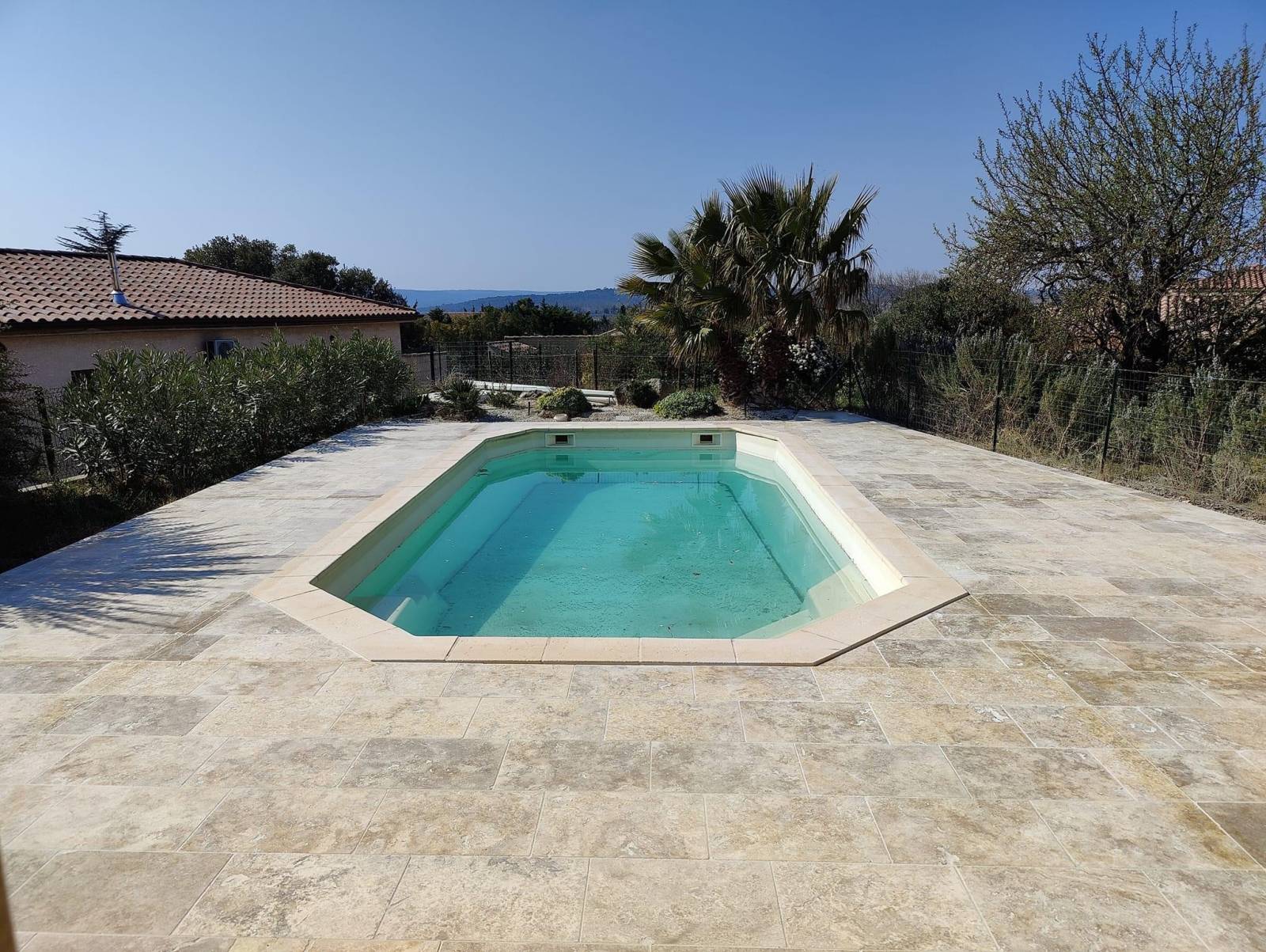 - Une margelle en travertin sur mesure pour une piscine unique