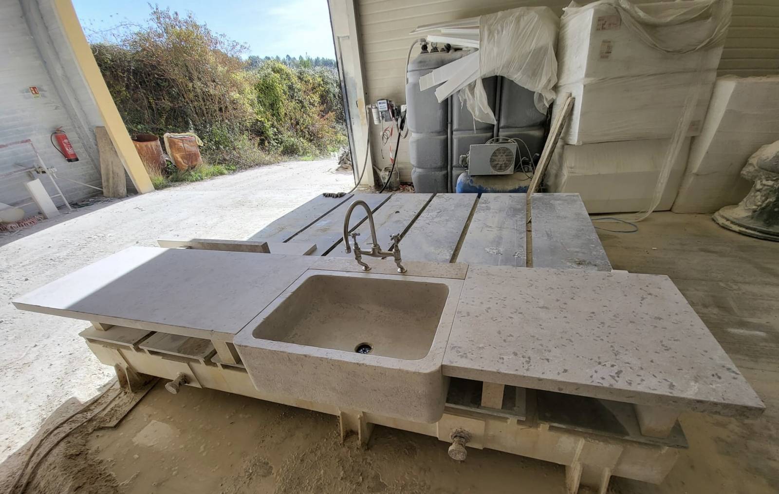 Nous fabriquons sur mesure dans notre atelier de Valliguières, évier, plan de travail, escalier, piliers, margelles.