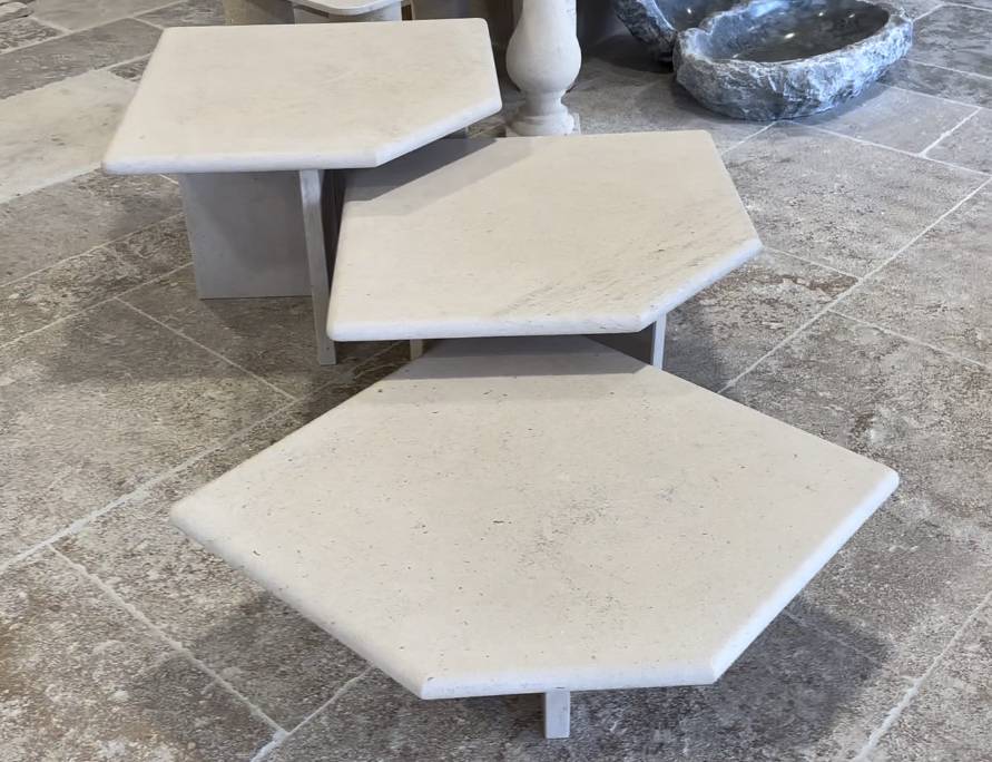 Cette pierre naturelle se marie particulièrement bien avec du bois, du verre ou du fer forgé. Ces associations démultiplient ses utilisations et apportent au mobilier, aux sols, aux aménagements et à toute autre réalisation, chaleur et finesse. On peut décliner à l’infini ces associations : mobilier en verre sur un pied de pierre, dallage avec des cabochons en cuivre, en verre, encadrements en bois ou encore mélanges de pierres entre elles.