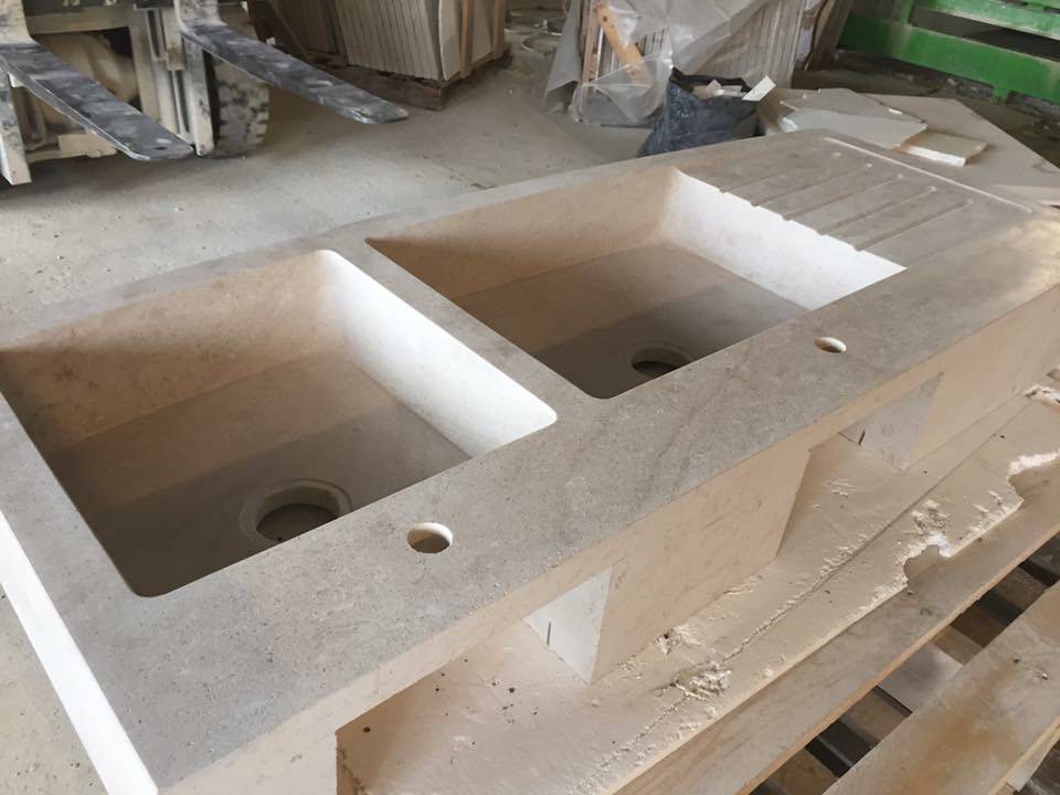 Nous fabriquons sur mesure dans notre atelier de Valliguières, évier, plan de travail, escalier, piliers, margelles.