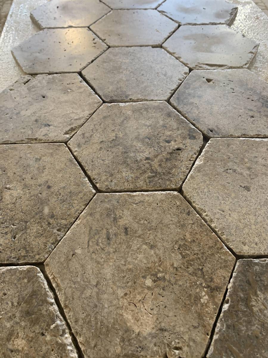 Les bords, légèrement épaufrés, ajoutent une touche d’authenticité avec leur aspect irrégulier et ancien. Le travertin et la pierre de France se distinguent par leurs variations naturelles, magnifiques en arêtes vives ou en finitions plus adoucies.