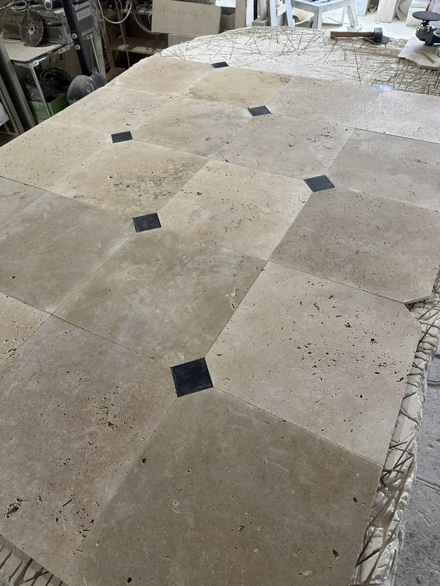 Travertin 1er choix : Matériau avec peu ou petits trous, légèrement nuancé.